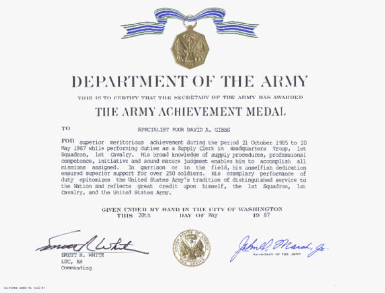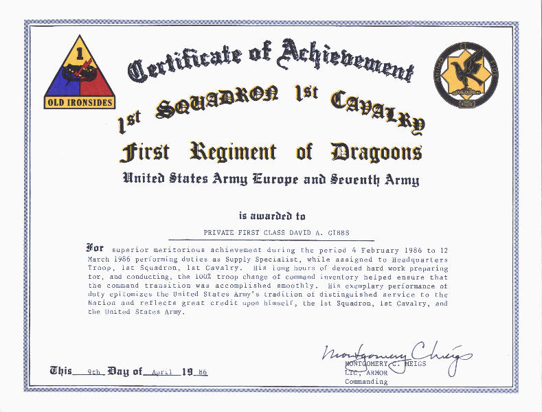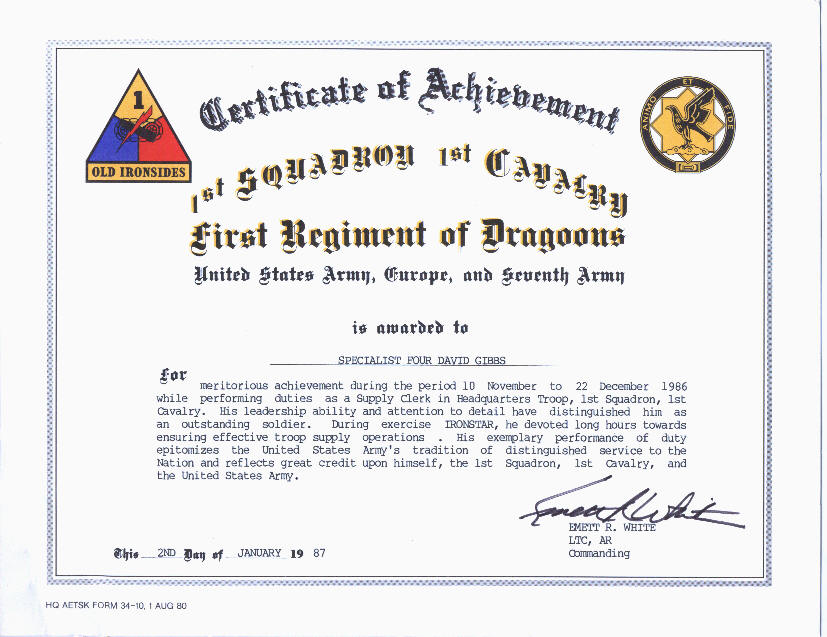 Certificate of Recognition 1995 National Fall Leadership 1995 SAB