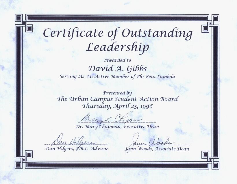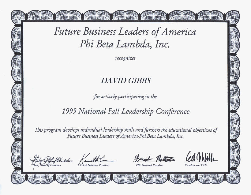 Certificate of Leadership 1996 Phi Beta Lambda SAB