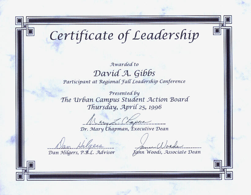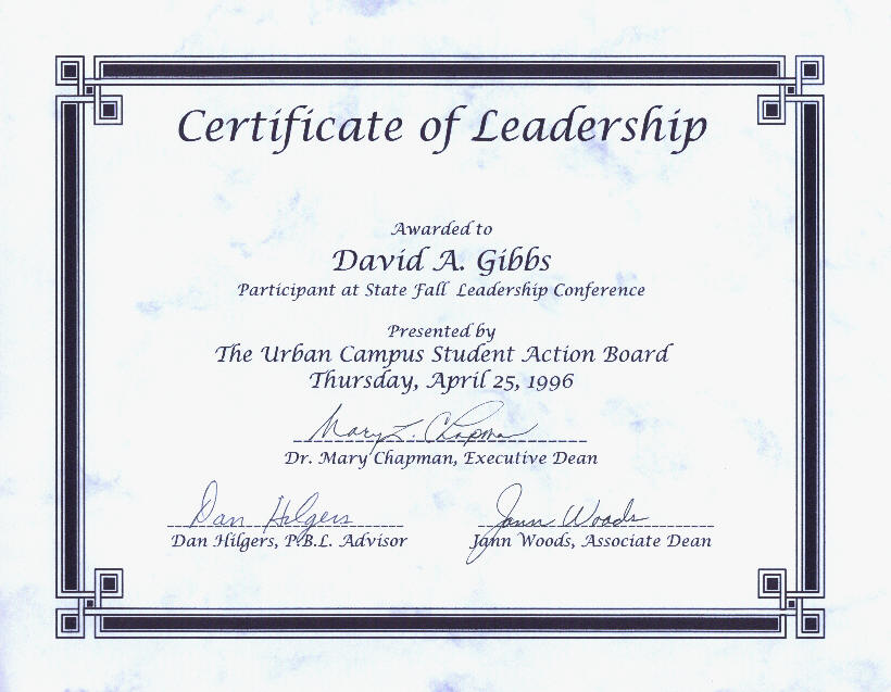 Certificate Leadership 1996 State Fall Leadership Conference SAB |